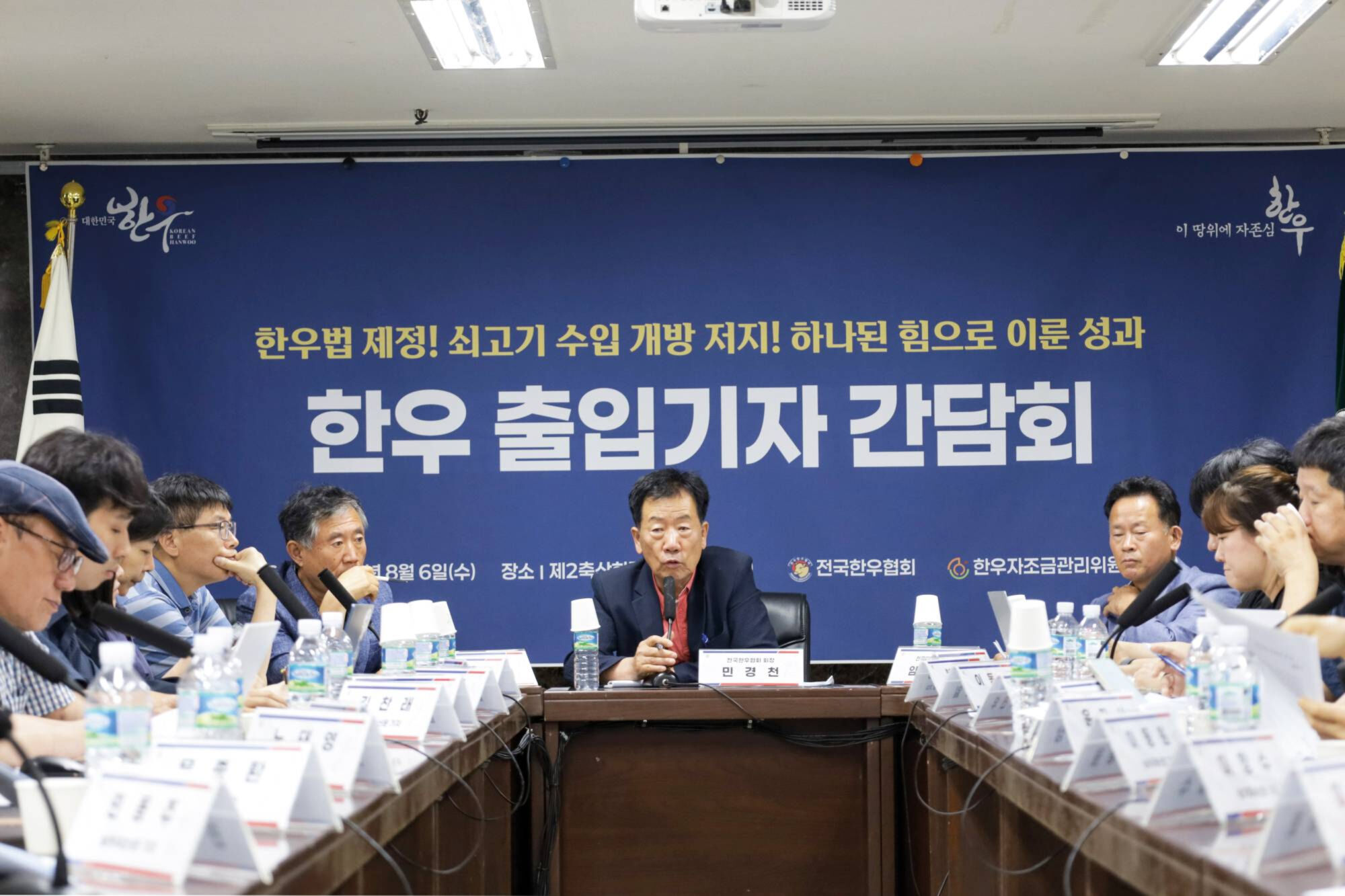 ▲ 한우자조금관리위원회와 전국한우협회는 8월 6일 기자간담회를 열고 현안 해결을 위한 향후 추진 방향에 대해 밝혔다.