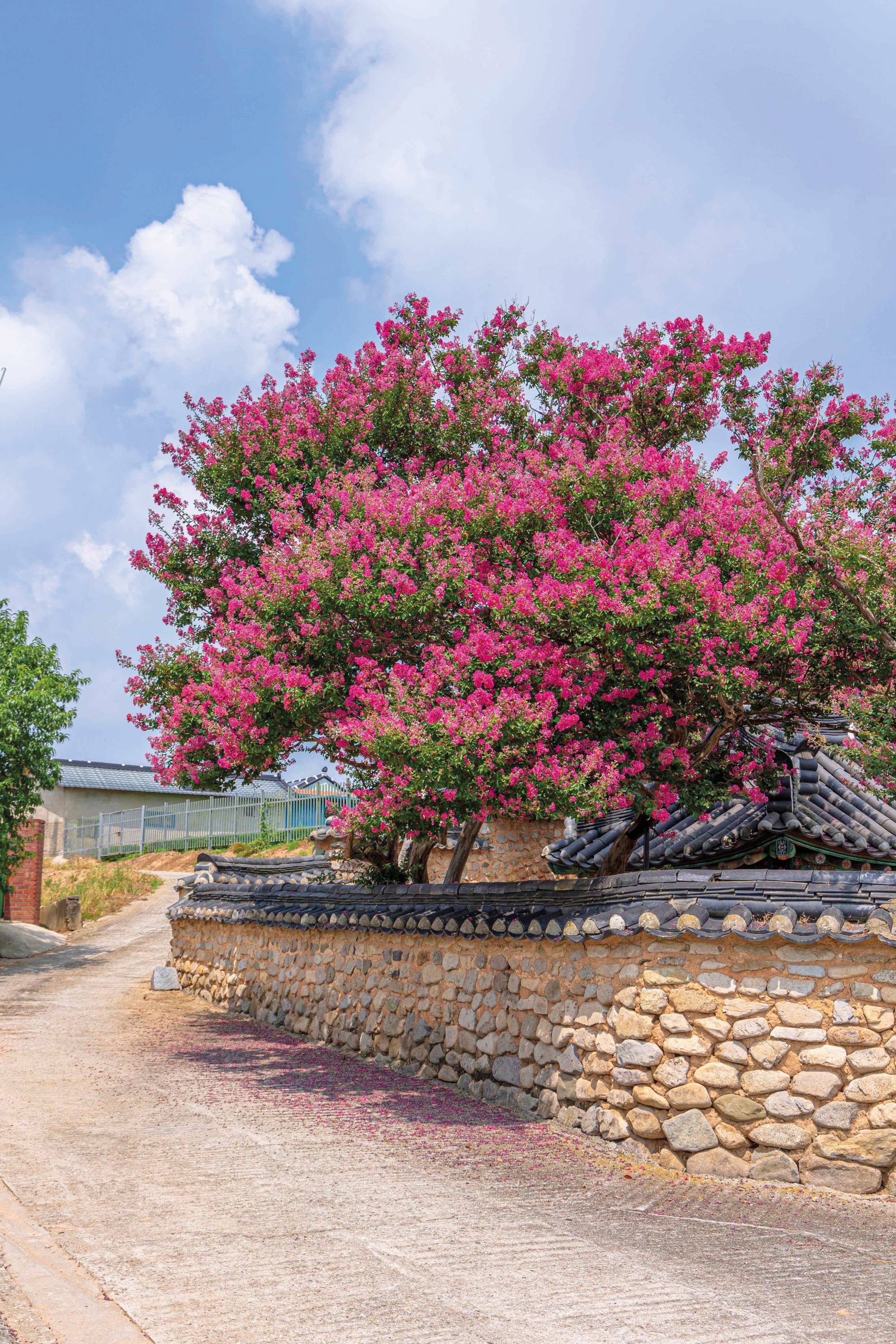 정읍시 태인면, 조용한 시골마을 한복판에 ‘서현사지’가 있다. 조선 순조 19년 임진왜란 때 순절한 박문효 참의를 기리기 위해 세워진 사우로, 그 역사적 가치를 인정받아 전북특별자치도 기념물 제48호로 지정됐다. 현재는 사당 건물은 사라지고 유허비와 정려문만 남아 있지만 여름이면 수령 190년가량의 배롱나무가 붉은 꽃을 피워 절터를 가득 채운다. 전통미가 돋보이는 정자, 단청 장식의 처마가 배롱나무꽃과 어우러져 수려한 경관을 만들어 낸다. 규모가 크지 않아 짧은 시간 안에 둘러보기 좋고, 입장료도 따로 없어 가볍게 들르기에 부담이 없다. 특히 배롱나무꽃이 절정을 이루는 8월에는 사진가와 여행객의 발길이 끊임없이 이어진다.