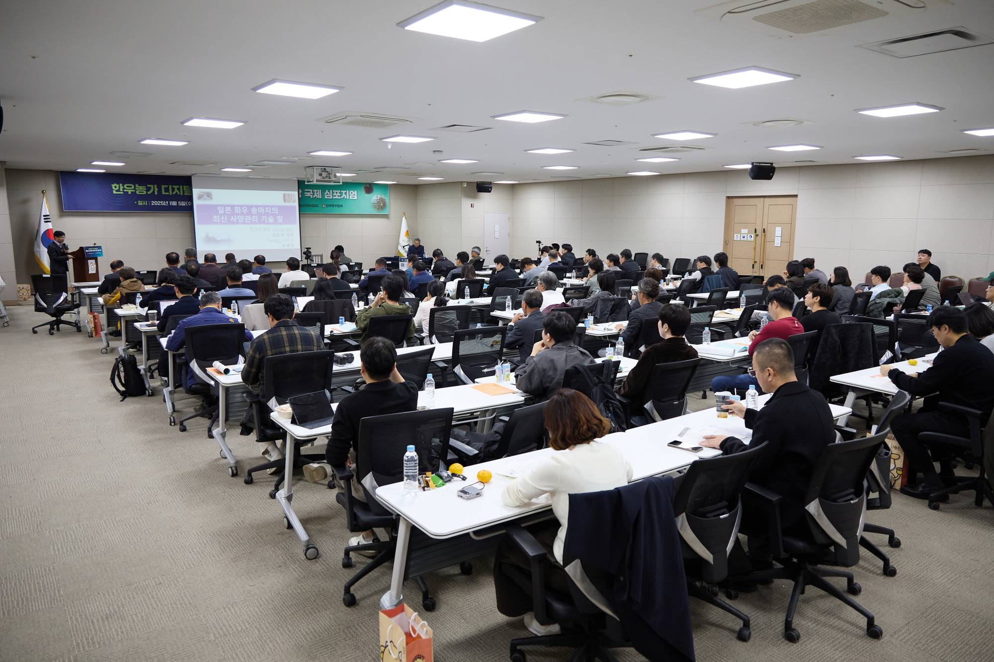 한우자조금은 한우산업의 지속가능한 성장과 인공지능(AI) 시대에 대응하기 위한 전략을 소개하고 논의하기 위해 11월 5일 정부세종컨벤션센터에서 ‘한우농가 디지털정보 활용 및 생산성 향상’ 국제 심포지엄을 개최했다. 이번 행사는 한우산업 전반에 산재한 데이터를 체계적으로 관리하고, 한우농가 맞춤형 데이터 서비스를 제공하기 위해 한우디지털정보센터(HDIC)의 구축과 AI 기반 정보 활용 방안을 모색하는 자리로 마련됐다.