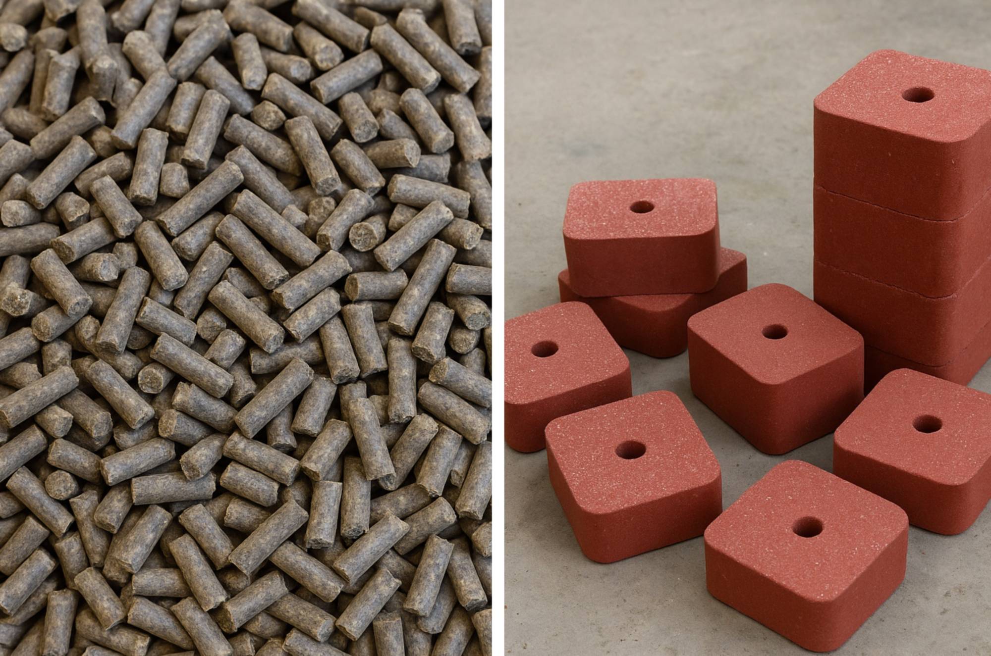▲ 미네랄 펠렛(좌)과 미네랄 블록(우)