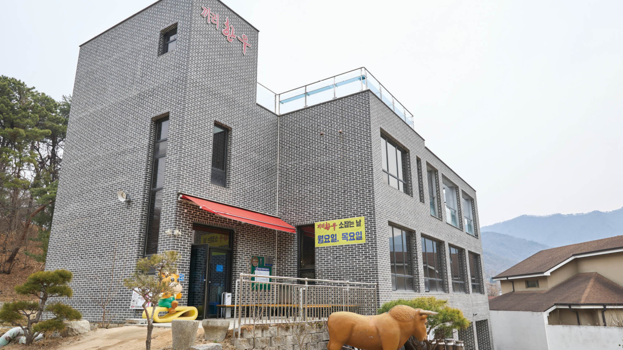 식당까지 가는 길이 정겹다. 남양주 와부읍의 시골길을 따라 수십 미터 정도 꼬불꼬불 들어가면 나온다. 기존 축사를 개조한 아이디어가 좋은데 한우 가격과 맛도 짜릿할 만큼 매력적이다. 한우암소고기 1등급 이상만을 취급하는 이곳은 170여 두의 한우를 직접 키우는 대표가 2015년 개업해 운영하는 정육식당으로 암송아지를 경매받아 미경산 비육우로 정성껏 키워 판매한다. 미경산우는 송아지를 한 번도 생산하지 않은 암소로, 부드러운 육질과 뛰어난 풍미로 한우 중에서도 최고급육으로 알아준다.