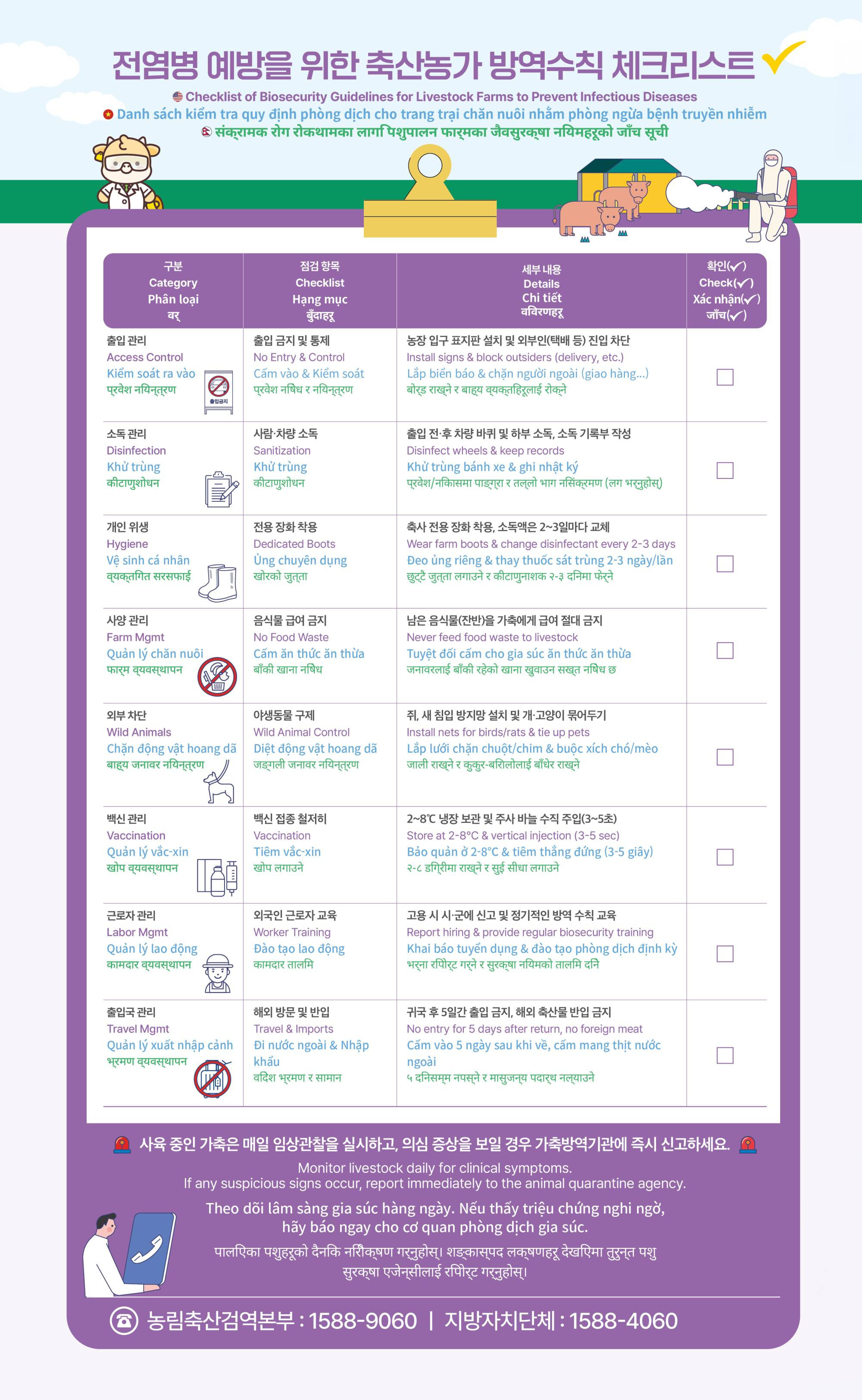 전염병 예방을 위한 축산농가 방역수칙 체크리스트